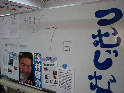 As for the Tsumura campaign operation, it was very similar to the Ogawa and Tamaki campaigns. The same emphasis on the manifesto. The same emphasis on youthful vitality; his staff wear t-shirts